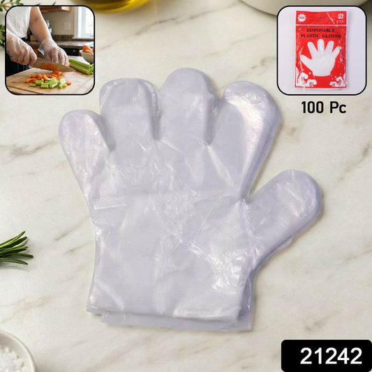Disposable Transparent Plastic Gloves (100 Piece Pack)